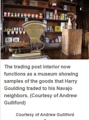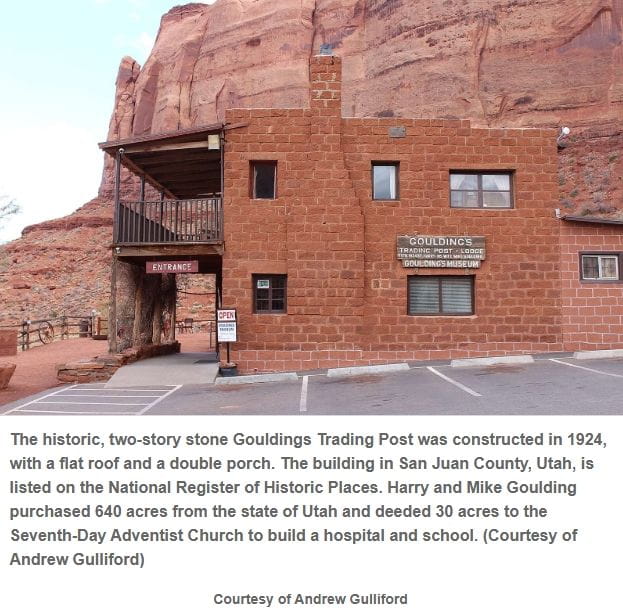 He intended to stay and set about building a two-story stone trading post with cozy living quarters on the second floor and trade goods below. His flocks grazed western San Juan County, Utah. Both Harry and his wife became fluent in Navajo. A book of oral history interviews, “Tall Sheep: Harry Goulding, Monument Valley Trader” by Samuel Moon, recounts numerous stories of the Gouldings helping their Native neighbors with medical emergencies.
