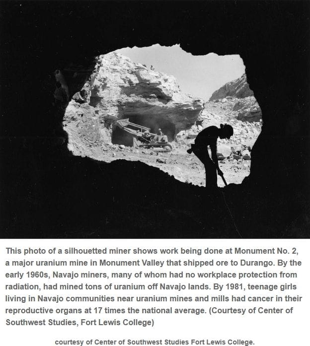 Goulding concluded his article saying Navajo land “was given to them as a reservation because it was considered worthless for any other purpose. No one dreamed, then, that it contained a big percentage of our uranium reserves and that because of this it actually is one of the most valuable areas in the country.”