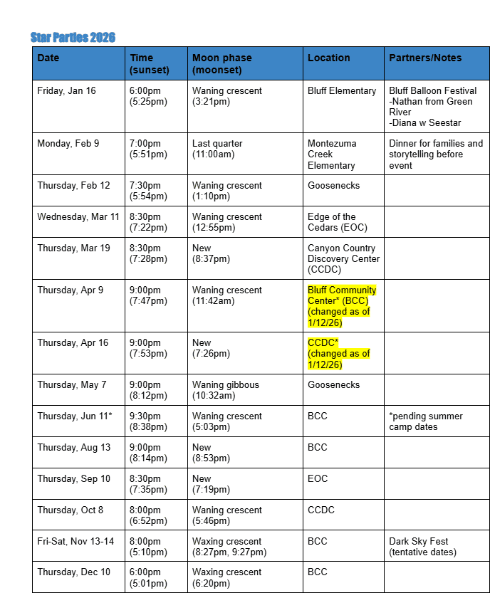 Monticello Canyon Country Discovery Center Star Parties