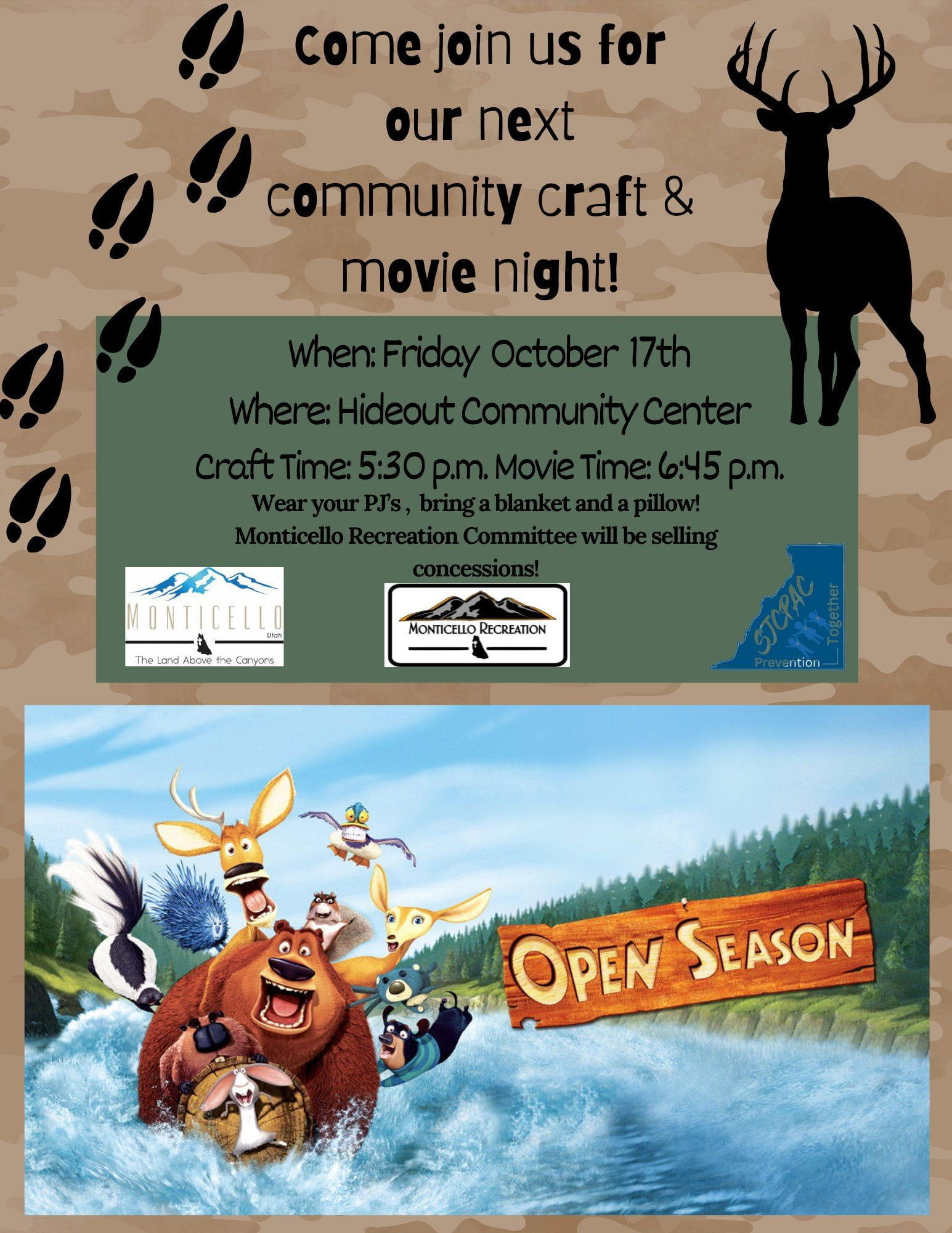 Check out our upcoming community movie night. Let's prepare for opening day with Open Season.