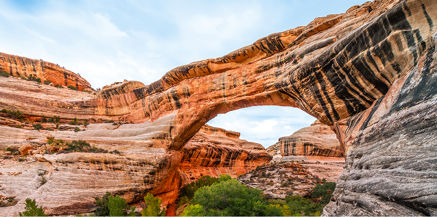 The easiest and most elegant of the monument's three bridges. A short walk delivers sweeping views of the delicate sandstone arch with distant Bears Ears buttes silhouetted on the horizon.