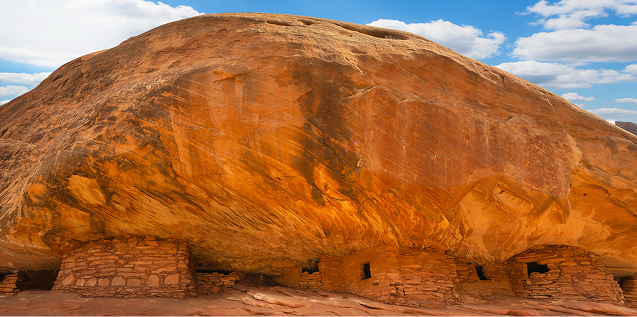 End the day at one of Utah's most iconic archeological sites. When sunlight angles into the south fork of Mule Canyon, the rock above this Ancestral Pueblo site appears to erupt in flame.